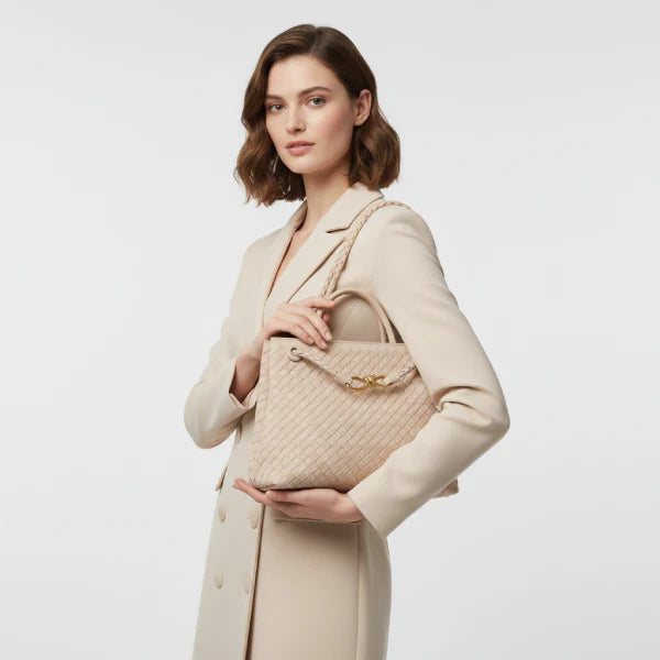Classic Design: Crafted with an elegant woven pattern and sophisticated finishes, the bag offers timeless appeal that suits both casual and professional settings.
